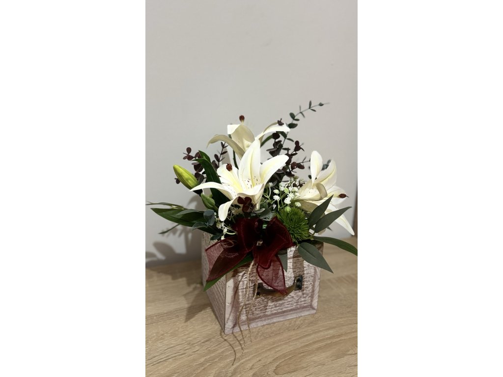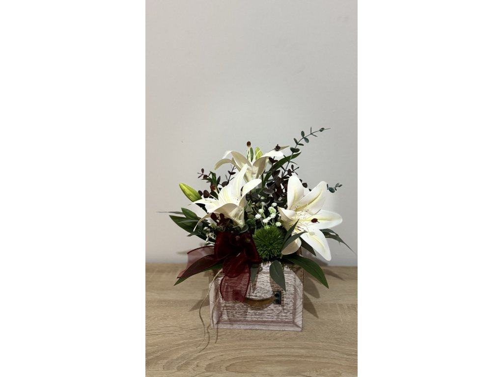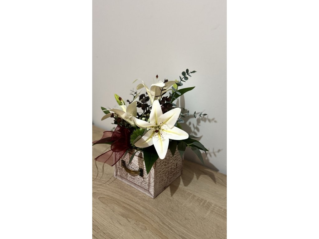 Tedd még elegánsabbá otthonod vagy ajándékod hangulatát ezzel a letisztult, fehér liliomokból álló dekorációs kompozícióval! 🤍🌿