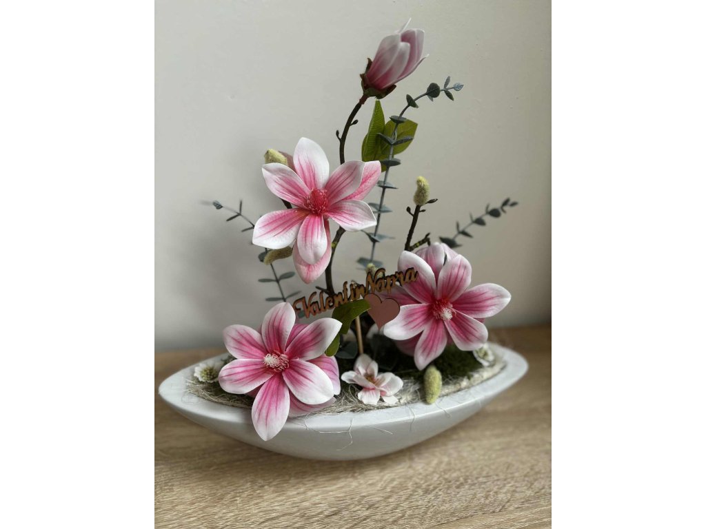 🌸 Rózsaszín cirmos, magnóliás dekoráció – Bloomina